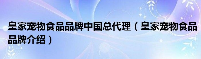 大家好,小源来为大家解答以上问题。皇家宠物食品品牌中国总代理,皇家宠物食品品牌介绍很多人还不知道,现在让我们一起来看看吧!
