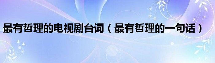 最有哲理的电视剧台词,最有哲理的一句话这个很多人还不知道,小飞来为大家解答以上的问题。现在让我们一起来看看吧!