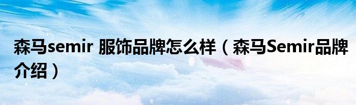 大家好,小源来为大家解答以上问题。森马semir 服饰品牌怎么样,森马Semir品牌介绍很多人还不知道,现在让我们一起来看看吧!