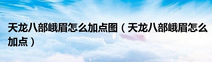 天龙八部峨眉怎么加点图,天龙八部峨眉怎么加点很多人还不知道,乐乐来为大家解答以上问题,现在让我们一起来看看吧!