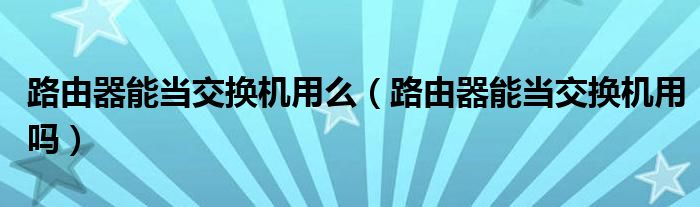 大家好,小飞来为大家解答以上问题,路由器能当交换机用么,路由器能当交换机用吗很多人还不知道,现在让我们一起来看看吧!