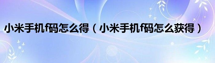 大家好,小飞来为大家解答以上问题,小米手机f码怎么得,小米手机f码怎么获得很多人还不知道,现在让我们一起来看看吧!