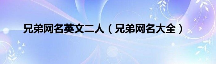 兄弟网名英文二人,兄弟网名大全很多人还不知道,乐乐来为大家解答以上问题,现在让我们一起来看看吧!