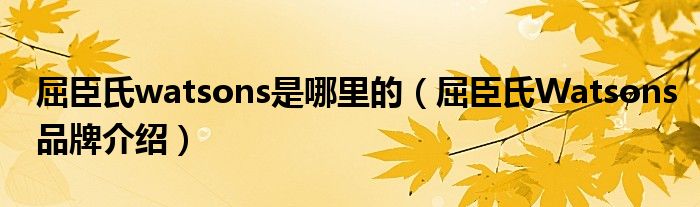 大家好,小源来为大家解答以上问题。屈臣氏watsons是哪里的,屈臣氏Watsons品牌介绍很多人还不知道,现在让我们一起来看看吧!