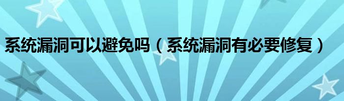 关于系统漏洞可以避免吗,系统漏洞有必要修复这个很多人还不知道,今天菲菲来为大家解答以上的问题,现在让我们一起来看看吧!