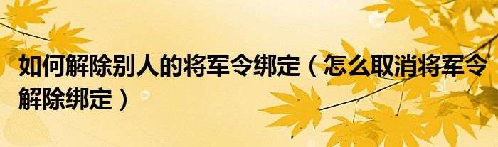 关于如何解除别人的将军令绑定,怎么取消将军令解除绑定这个很多人还不知道,今天菲菲来为大家解答以上的问题,现在让我们一起来看看吧!