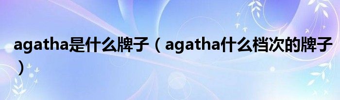 agatha是什么牌子(agatha什么档次的牌子)