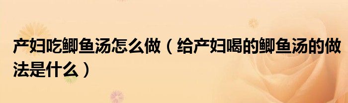 大家好,linda来为大家解答以上的问题。产妇吃鲫鱼汤怎么做,给产妇喝的鲫鱼汤的做法是什么很多人还不知道,现在让我们一起来看看吧!
