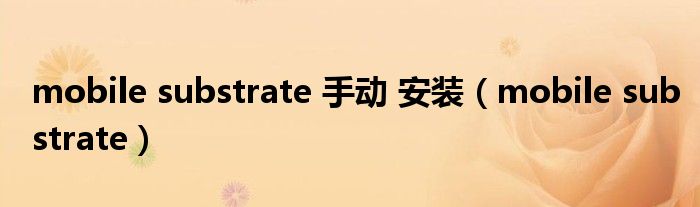 大家好,雨雨来为大家解答以上问题,mobile substrate 手动 安装,mobile substrate很多人还不知道,现在让我们一起来看看吧!