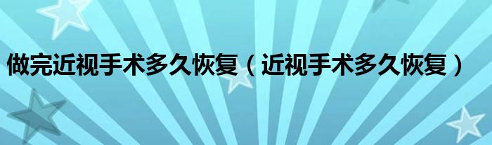 大家好,linda来为大家解答以上的问题。做完近视手术多久恢复,近视手术多久恢复很多人还不知道,现在让我们一起来看看吧!