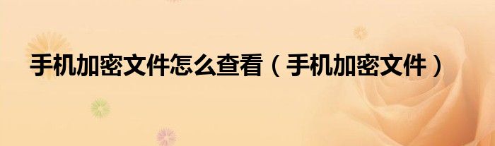 大家好,雨雨来为大家解答以上问题,手机加密文件怎么查看,手机加密文件很多人还不知道,现在让我们一起来看看吧!