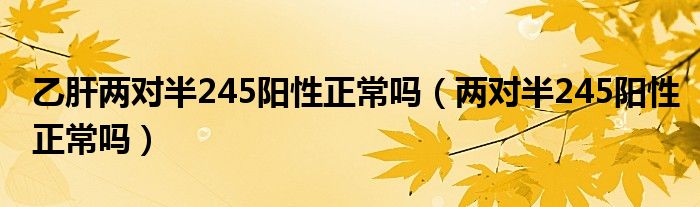 大家好,linda来为大家解答以上的问题。乙肝两对半245阳性正常吗,两对半245阳性正常吗很多人还不知道,现在让我们一起来看看吧!