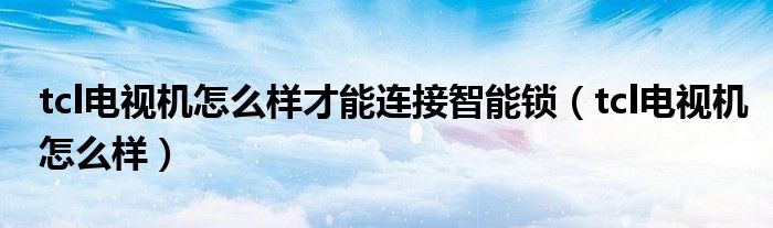 大家好,雨雨来为大家解答以上问题,tcl电视机怎么样才能连接智能锁,tcl电视机怎么样很多人还不知道,现在让我们一起来看看吧!