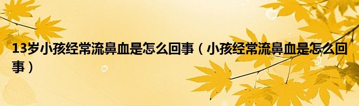 大家好,linda来为大家解答以上的问题。13岁小孩经常流鼻血是怎么回事,小孩经常流鼻血是怎么回事很多人还不知道,现在让我们一起来看看吧!