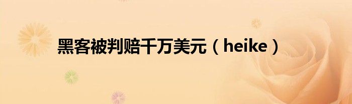 大家好,雨雨来为大家解答以上问题,黑客被判赔千万美元,heike很多人还不知道,现在让我们一起来看看吧!