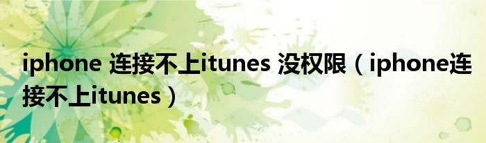 大家好,雨雨来为大家解答以上问题,iphone 连接不上itunes 没权限,iphone连接不上itunes很多人还不知道,现在让我们一起来看看吧!