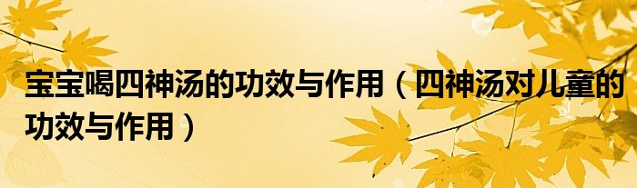 大家好,linda来为大家解答以上的问题。宝宝喝四神汤的功效与作用,四神汤对儿童的功效与作用很多人还不知道,现在让我们一起来看看吧!