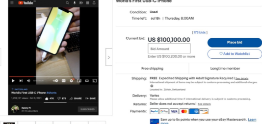 上个月,机器人系学生为iPhoneX改装了USB-C端口,并在eBay上拍卖了这款设备——它已经吸引了一些令人瞠目结舌的出价。周二,iPhone的首次报价为3,500美元。然而,在接下来的28小时内,出价迅速飙升至50,000美元以上。截至周四下午,最高出价翻了一番,达到100,100美元。