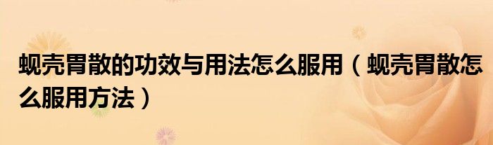 大家好,linda来为大家解答以上的问题。蚬壳胃散的功效与用法怎么服用,蚬壳胃散怎么服用方法很多人还不知道,现在让我们一起来看看吧!