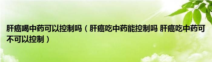 大家好,linda来为大家解答以上的问题。肝癌喝中药可以控制吗,肝癌吃中药能控制吗 肝癌吃中药可不可以控制很多人还不知道,现在让我们一起来看看吧!