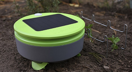 Roomba形状的Tertill设计用于从春天到秋天都在户外花园中生活,是一款耐候机器人。它采用绿色和灰色饰面,高4.5英寸,宽8.2英寸,重约2.5磅。它使用4.3x5.3英寸(HW)太阳能电池板从太阳获取电力,该太阳能电池板与电源按钮和五个LED灯共享机器人顶部的空间,当您启动设备时,这些LED灯会依次闪烁。在机器人开始其例行程序前几秒钟会发出一声提示音。