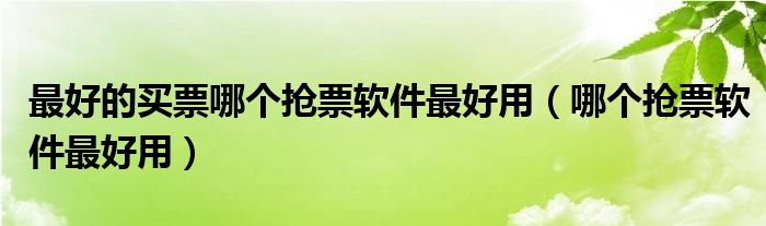 大家好,来宝来为大家解答以下问题,最好的买票哪个抢票软件最好用,哪个抢票软件最好用很多人还不知道,今天让我们一起来看看吧!