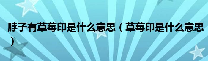 大家好,小晋来为大家解答以下问题,关于脖子有草莓印是什么意思,草莓印是什么意思很多人还不知道,今天让我们一起来看看吧!