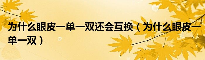 大家好,linda来为大家解答以上的问题。为什么眼皮一单一双还会互换,为什么眼皮一单一双很多人还不知道,现在让我们一起来看看吧!