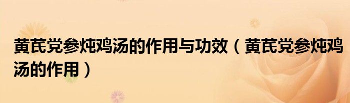 大家好,linda来为大家解答以上的问题。黄芪党参炖鸡汤的作用与功效,黄芪党参炖鸡汤的作用很多人还不知道,现在让我们一起来看看吧!