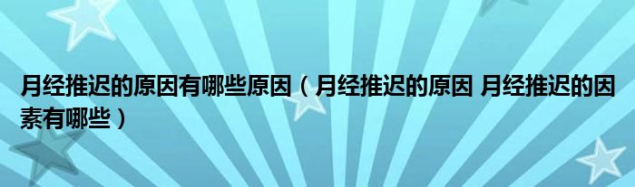 大家好,linda来为大家解答以上的问题。月经推迟的原因有哪些原因,月经推迟的原因 月经推迟的因素有哪些很多人还不知道,现在让我们一起来看看吧!