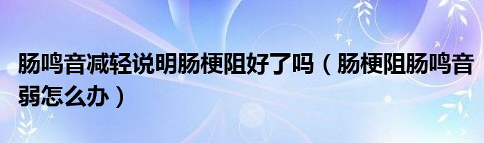 大家好,linda来为大家解答以上的问题。肠鸣音减轻说明肠梗阻好了吗,肠梗阻肠鸣音弱怎么办很多人还不知道,现在让我们一起来看看吧!
