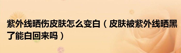 大家好,linda来为大家解答以上的问题。紫外线晒伤皮肤怎么变白,皮肤被紫外线晒黑了能白回来吗很多人还不知道,现在让我们一起来看看吧!