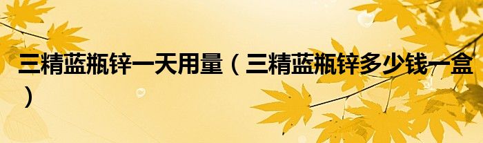 大家好,linda来为大家解答以上的问题。三精蓝瓶锌一天用量,三精蓝瓶锌多少钱一盒很多人还不知道,现在让我们一起来看看吧!