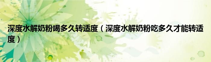 大家好,linda来为大家解答以上的问题。深度水解奶粉喝多久转适度,深度水解奶粉吃多久才能转适度很多人还不知道,现在让我们一起来看看吧!