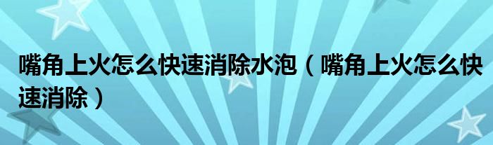 嘴角上火怎么快速消除水泡(嘴角上火怎么快速消除)