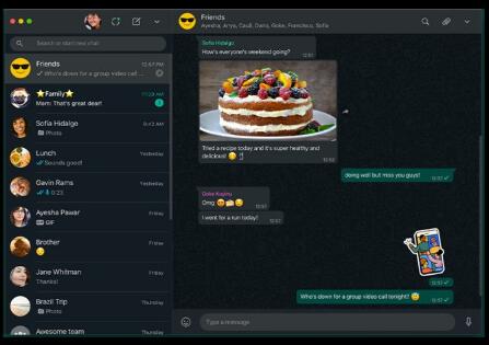 黑暗模式下桌面上的WhatsApp布局