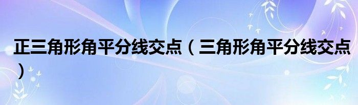 大家好,小晋来为大家解答以下问题,关于正三角形角平分线交点,三角形角平分线交点很多人还不知道,今天让我们一起来看看吧!
