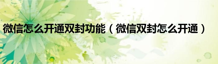 大家好,小晋来为大家解答以下问题,关于微信怎么开通双封功能,微信双封怎么开通很多人还不知道,今天让我们一起来看看吧!