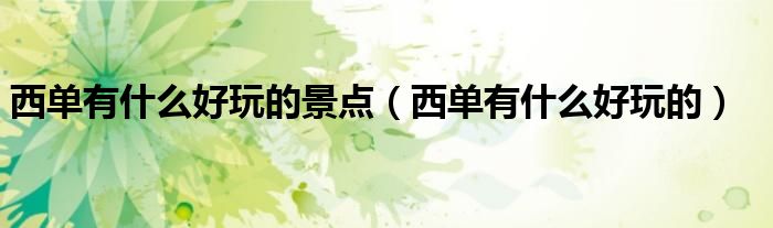 大家好,小晋来为大家解答以下问题,关于西单有什么好玩的景点,西单有什么好玩的很多人还不知道,今天让我们一起来看看吧!