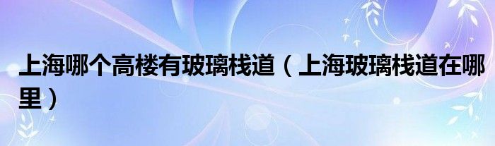 大家好,小晋来为大家解答以下问题,关于上海哪个高楼有玻璃栈道,上海玻璃栈道在哪里很多人还不知道,今天让我们一起来看看吧!