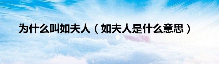 大家好,小晋来为大家解答以下问题,关于为什么叫如夫人,如夫人是什么意思很多人还不知道,今天让我们一起来看看吧!