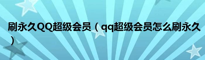 大家好,小晋来为大家解答以下问题,关于刷永久QQ超级会员,qq超级会员怎么刷永久很多人还不知道,今天让我们一起来看看吧!