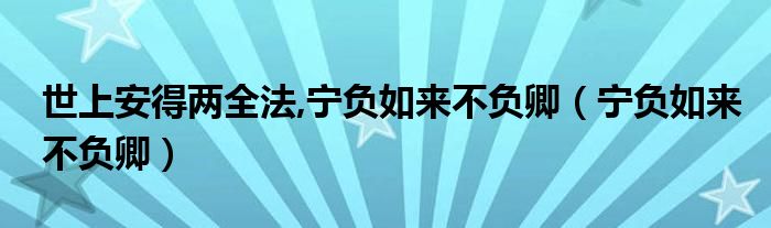 大家好,小晋来为大家解答以下问题,关于世上安得两全法,宁负如来不负卿,宁负如来不负卿很多人还不知道,今天让我们一起来看看吧!