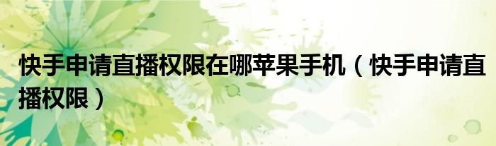 大家好,小晋来为大家解答以下问题,关于快手申请直播权限在哪苹果手机,快手申请直播权限很多人还不知道,今天让我们一起来看看吧!