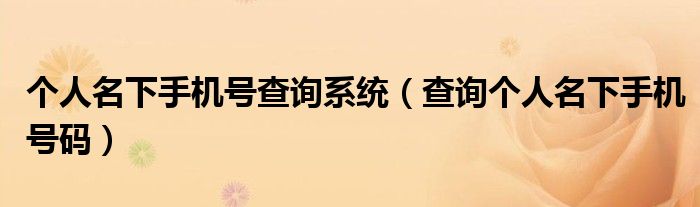 大家好,小晋来为大家解答以下问题,关于个人名下手机号查询系统,查询个人名下手机号码很多人还不知道,今天让我们一起来看看吧!