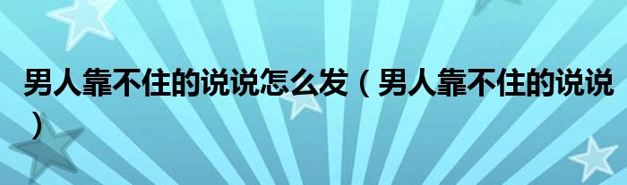 大家好,小晋来为大家解答以下问题,关于男人靠不住的说说怎么发,男人靠不住的说说很多人还不知道,今天让我们一起来看看吧!