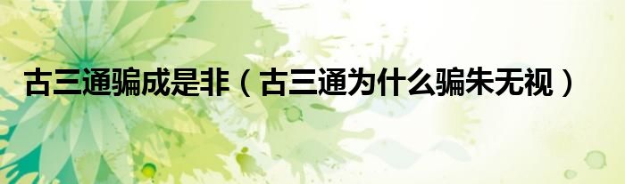 大家好,小晋来为大家解答以下问题,关于古三通骗成是非,古三通为什么骗朱无视很多人还不知道,今天让我们一起来看看吧!