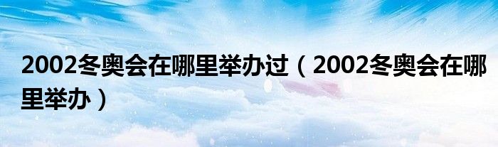 大家好,小晋来为大家解答以下问题,关于2002冬奥会在哪里举办过,2002冬奥会在哪里举办很多人还不知道,今天让我们一起来看看吧!