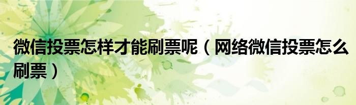 大家好,小晋来为大家解答以下问题,关于微信投票怎样才能刷票呢,网络微信投票怎么刷票很多人还不知道,今天让我们一起来看看吧!
