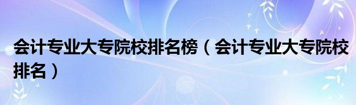 大家好,小晋来为大家解答以下问题,关于会计专业大专院校排名榜,会计专业大专院校排名很多人还不知道,今天让我们一起来看看吧!